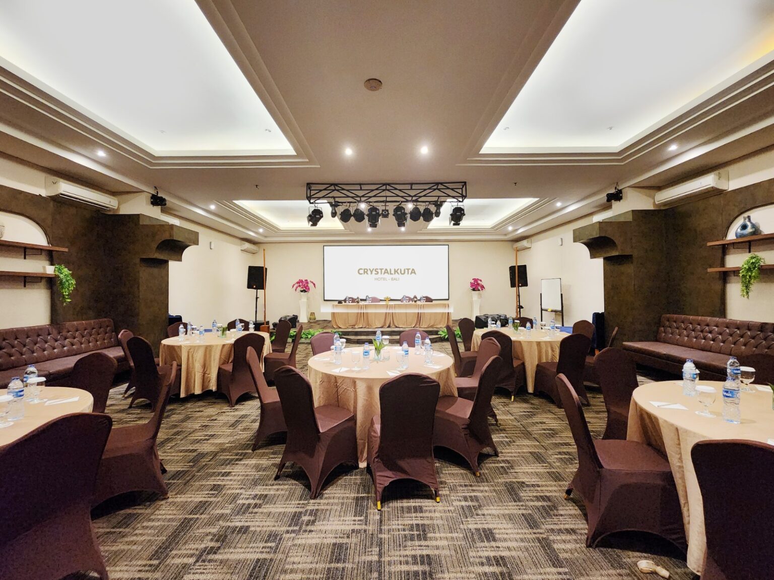 Our meeting space are ideal for events of different sizes and settings. The capacities for each set are 100 pax (Round Table), 130 pax (Classroom), and 150 pax (Theatre).